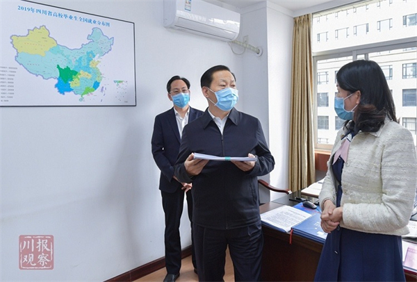 调研中,彭清华来到教育厅基础教育处、高校学生工作处,与工作人员亲切交谈,详细询问全省中小学疫情防控、网上在线教育教学、控辍保学和加强高校思想政治工作、“双一流”高校建设、大学生就业创业等情况。
